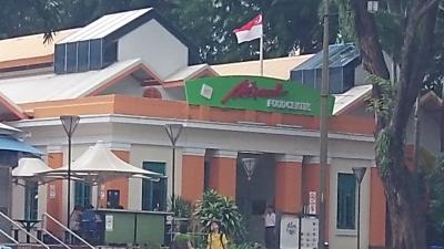 MRTハーバーフロント駅隣接、セントーサエクスプレス駅改札を出てすぐ、朝一でセントーサ島にモノレールで移動しマーライオン展望後、昼食のためいざフードコートへ・・・。ラクサ(S$5.8=約¥452)と前日も食べたバクテー(スープが透明感・若干の辛さあり)オイスターオムレツ(生カキが入っている)を実食。