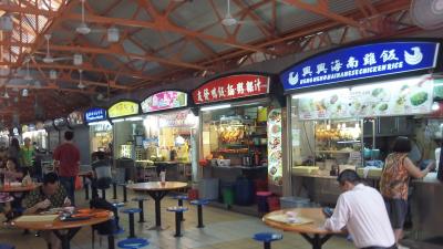 MRTチャイナタウン駅から徒歩8分にある、マックスウェルフードセンター内にあるチキンライスの有名店に16:00前に訪問したが、平日の昼食・夕食時でもないのに行列になっていて、食べずに店舗メニュー値段・雰囲気を確認して移動。(チキンライスSサイズS$3.2=約¥250)
