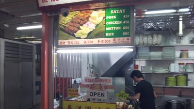 春満園にてサテを食べる10本単位の注文(豚・鳥各5本ずつ)10本でS$4.5(約¥347)たれにつけて食べた、1本が日本の焼き鳥よりも小さ目。- 旅行時期
