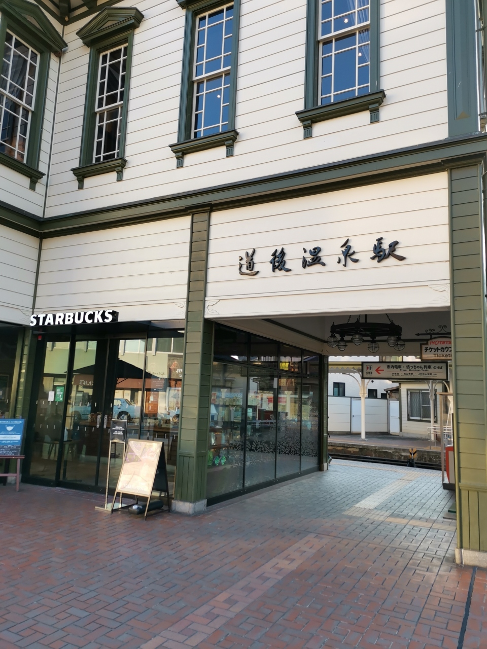 路面電車の道後温泉駅舎がスタバになっているお店です