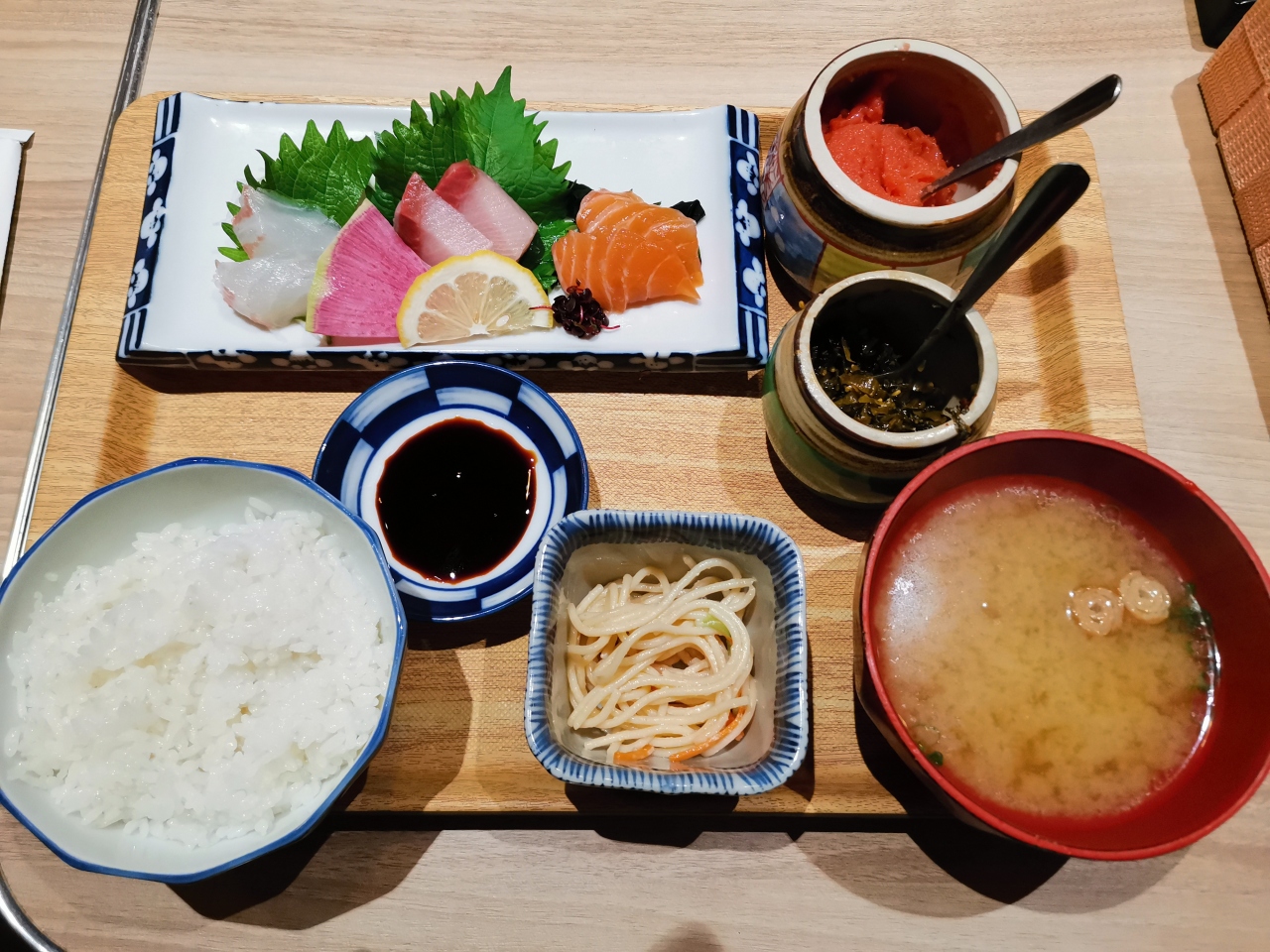 「まかない屋丼」と少し迷いましたが、丼だとご飯が多くなりがちなので、「刺身盛り合わせ定食」に決めました