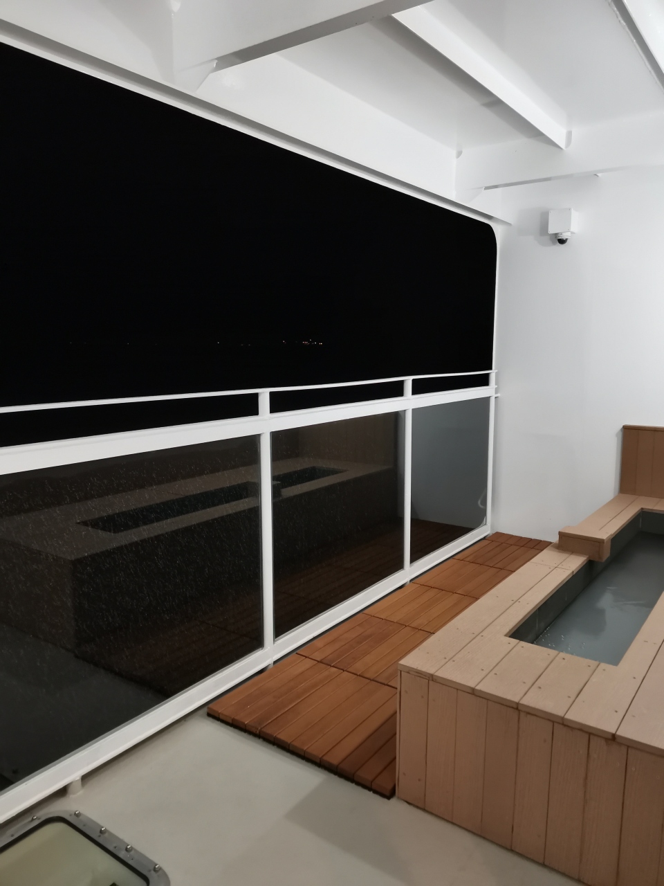 そのほか、お風呂(足湯コーナーあり)も完備しており4時間程度の船旅ですが、もっと長くても快適に過ごせる設備です