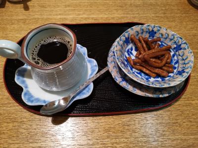 食後には牛蒡かりんとうとコーヒーがついてきます- 旅行時期