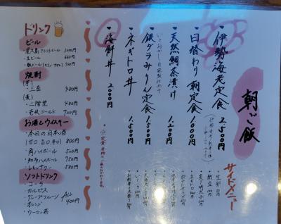朝食メニューは定食と丼あわせて6種類、さらにサイドメニューがお刺身3種盛りから始まり、いくら、ネギトロなど海鮮やポテサラ、納豆など豊富にあり、朝食営業とは思えない