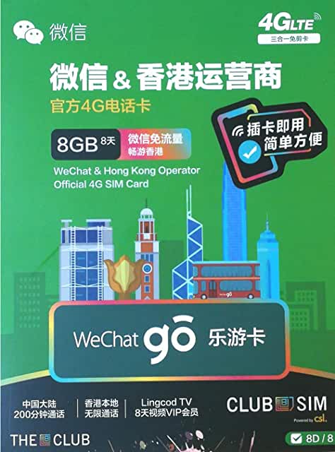 これまではCHINA UNICOM(香港)のSIMを使ってましたが、今回は目に入ったこのカード(微信&香港运营商)にしました。