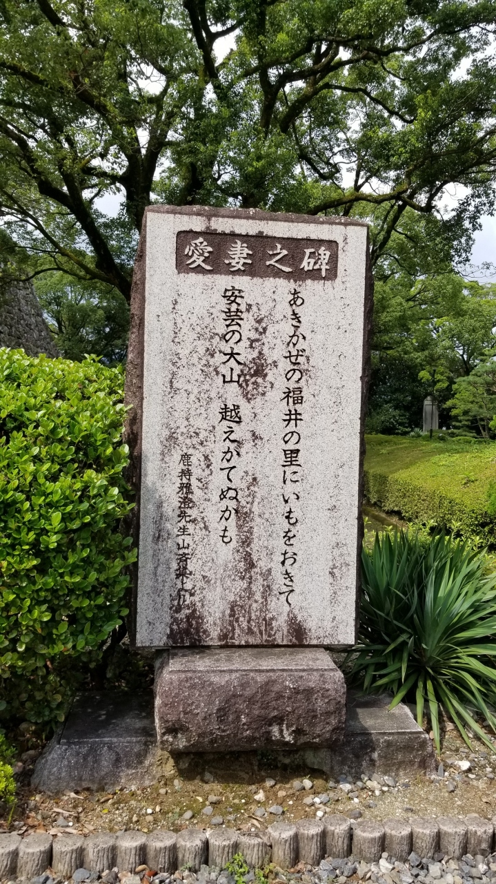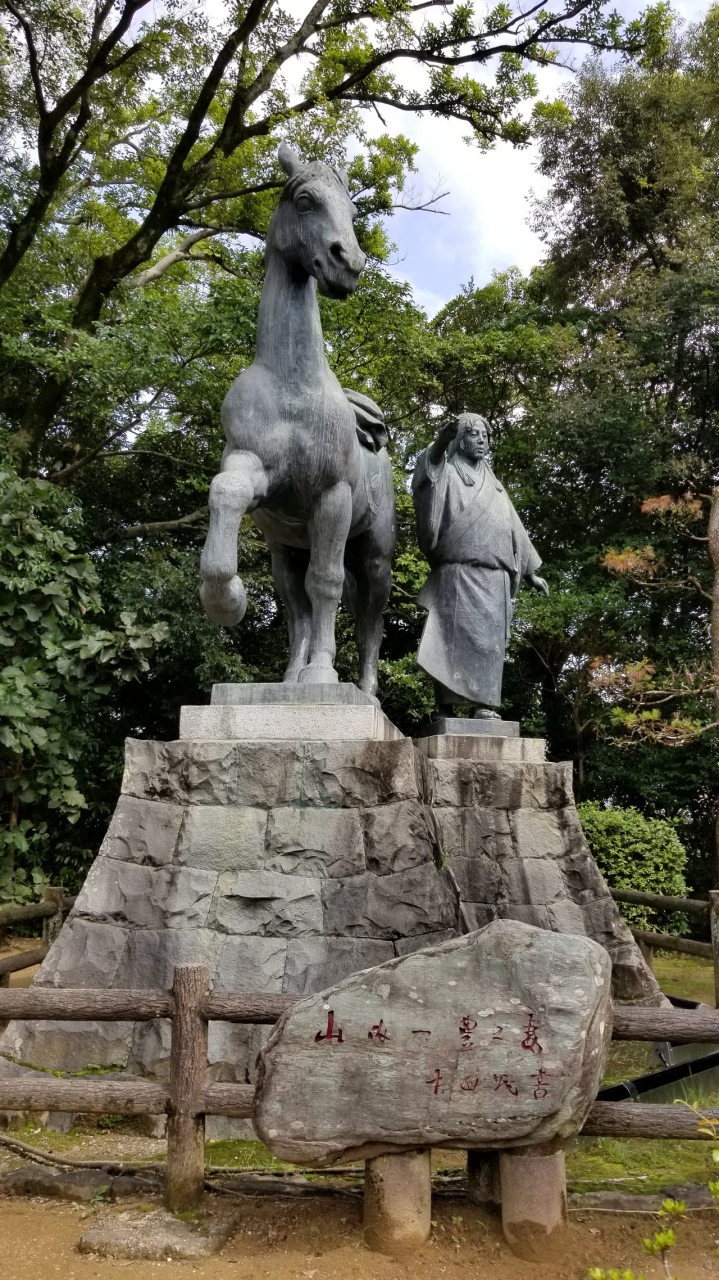 山内一豊の妻を唄った(多分)婢です。高知城のなかにあります。何年か前に大河ドラマで主人公になりましたね。本当は「妻」とだけ記録が残っていて、名前はわからないのだとか。和歌の婢のすぐそばに馬と一緒の妻の像もあります。