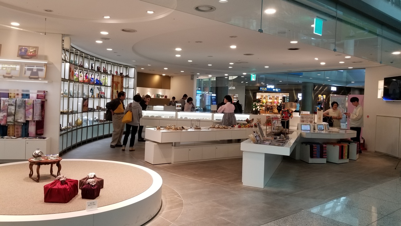 韓国伝統のお土産を販売していて、品物の質がとてもいいです。また、韓国文化体験が無料でできます。毎回通る度に違うプログラムをやっています。外国人のみたいけんできて、たまに、小さな自分のお土産になりそうなもののときに、また、搭乗まで時間のあるときに利用しています。空港内に何ヵ所かあり、場所によって文化体験のプログラムが違うときがかります。