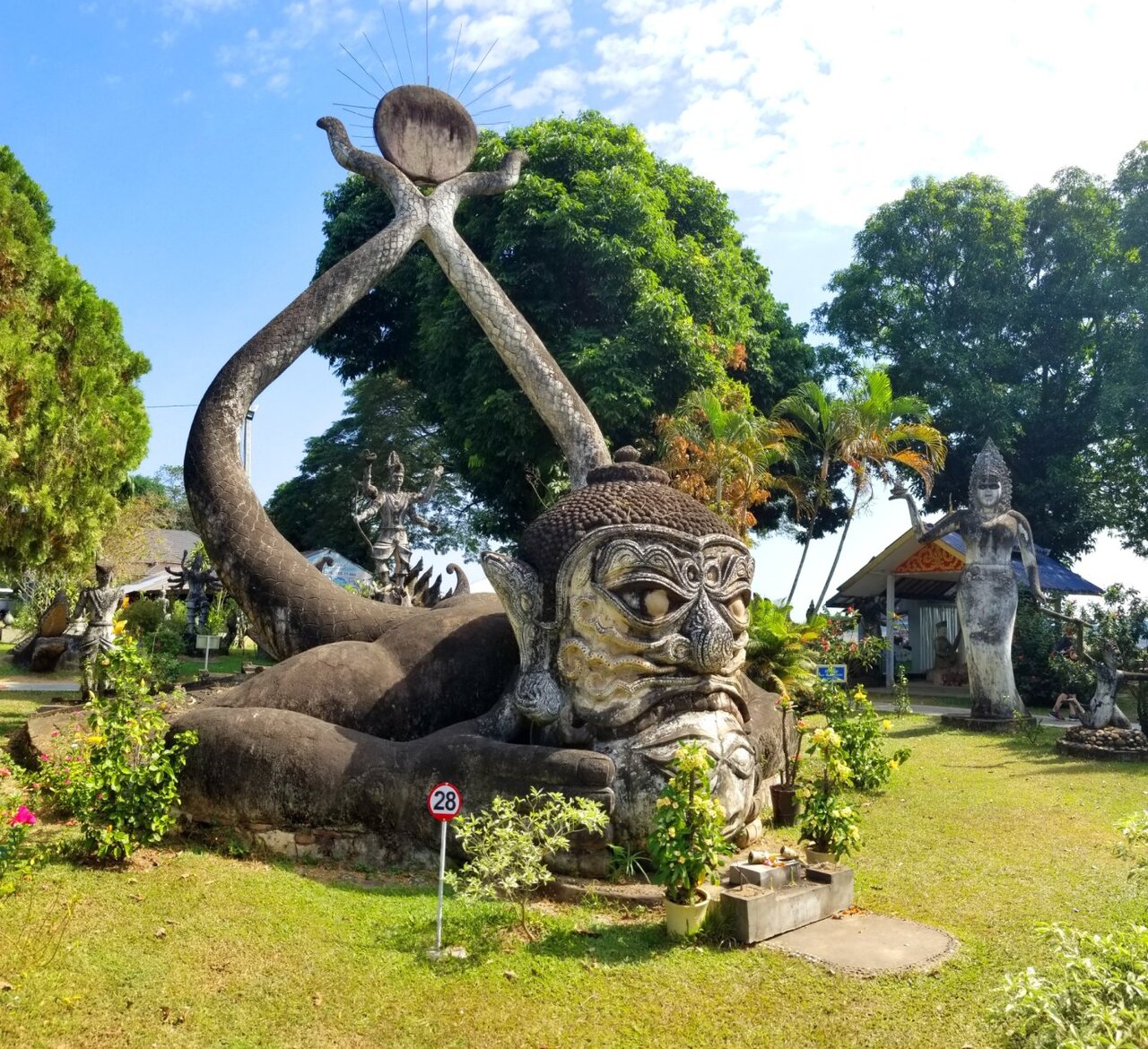 観光地の少ないビエンチャンでは貴重な楽しめる観光地と思います。宗教的な意味はおそらくないため、ガンガン写真撮って楽しむといいと思います。個性的な仏像がたくさんあります。日陰が少ないですが、所どころに木陰があるので休み休み見学できます。公共のバスでもいけますし、トゥクトゥクでも行けますが、観光バスで来ている人が圧倒的に多く、団体が行ってしまうと結構静かになります。