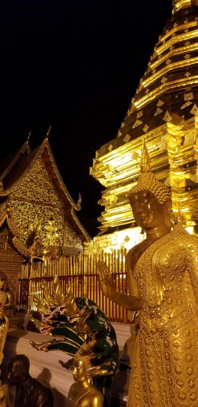 ナイトツアーというのがあったのでそれを使って行きました。昼間行くと暑くて大変ですが、夜は涼しくて快適でした。階段上るのも夜だと苦になりませんでした。山の上にありますので、夜景も眺められます。チェンマイがあんなにも都会だということに、夜景を見てびっくりしました。