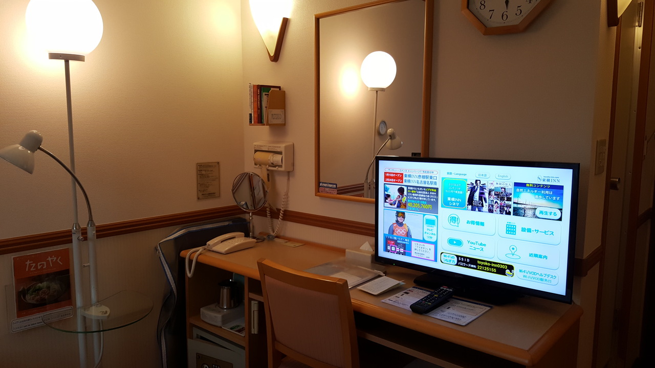 いつもの東横イン、ですが、ここははじめてでした。新幹線口をでたら、少し先にネオンが見えたので、迷わずに行けました。チェックインすぐにできました。比較的古いタイプの東横インでしたが、とくに問題なく、快適に過ごしました。館内の自販機がコンビニよりやすい設定で、素晴らしいです。