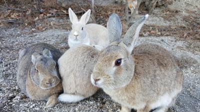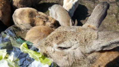 アクセスがよくないのに外国人も多く訪れるというウサギ島。土曜日朝10:00に到着する高速船で訪れました。カットキャベツを2袋とチンゲン菜と小松菜を1袋ずつもっていきましたが、30分でほとんどなくなりました。すごく癒されます。基本外にいることになるので、天気が重要と思います。