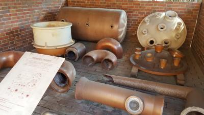 館内は写真禁止でした。唯一、外の展示物だけが写真を撮れる展示物です。ボロボロの当時の防護衣や防毒マスク、給料明細など展示されています。なんとも愚かなことをしていたのかと、ただただ、腹立たしいです。せっかくの機会なのでウサギだけでなく、こちらも見学をオススメします。