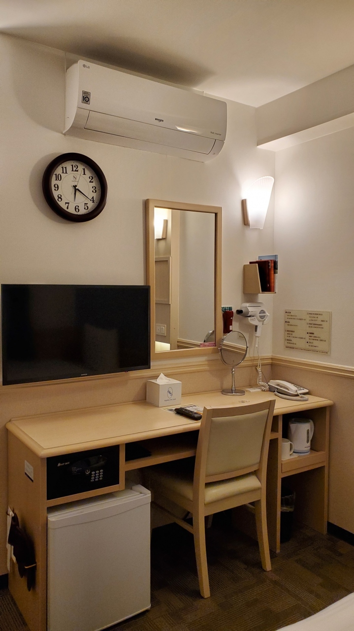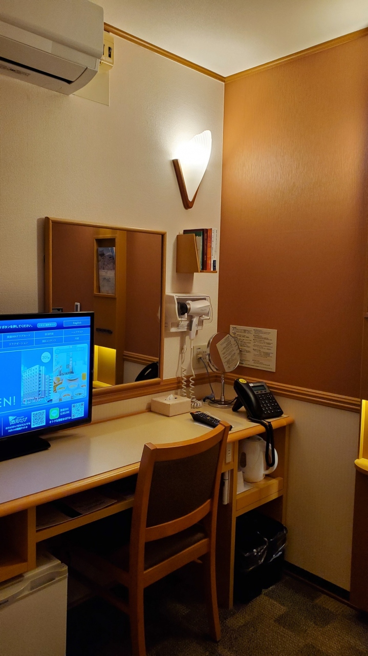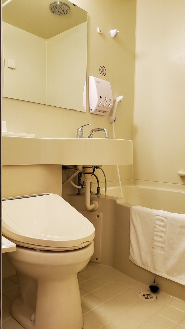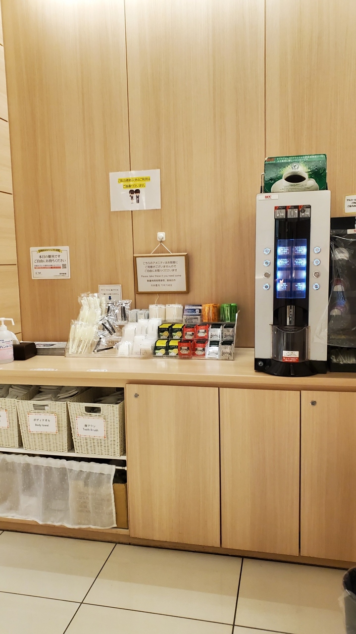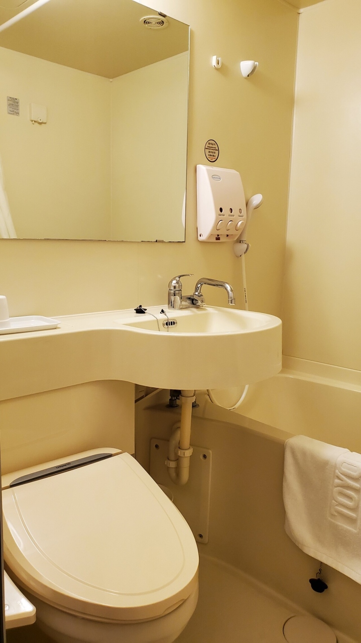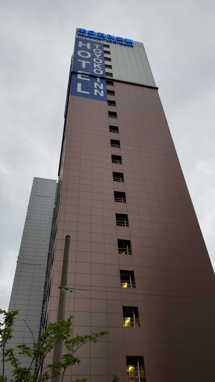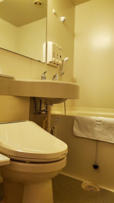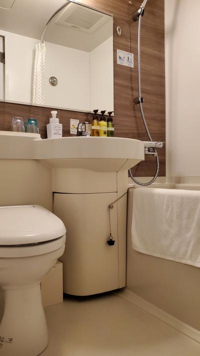 駅前、というわけではないけど、2分くらいです。ロビーが広くないので、朝食用のテーブルが気持ち不足している気がしました。新しいホテルではないので、ユニットバスの段差が高いです。水回りキレイで、必要なものはすべて揃っている、いつものコスパの高いホテルチェーンです。