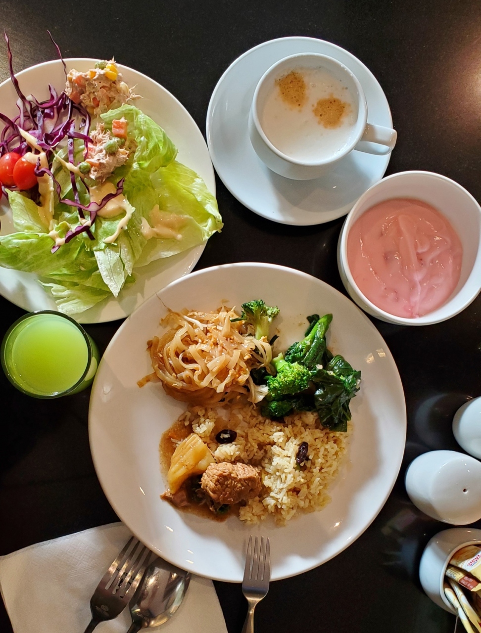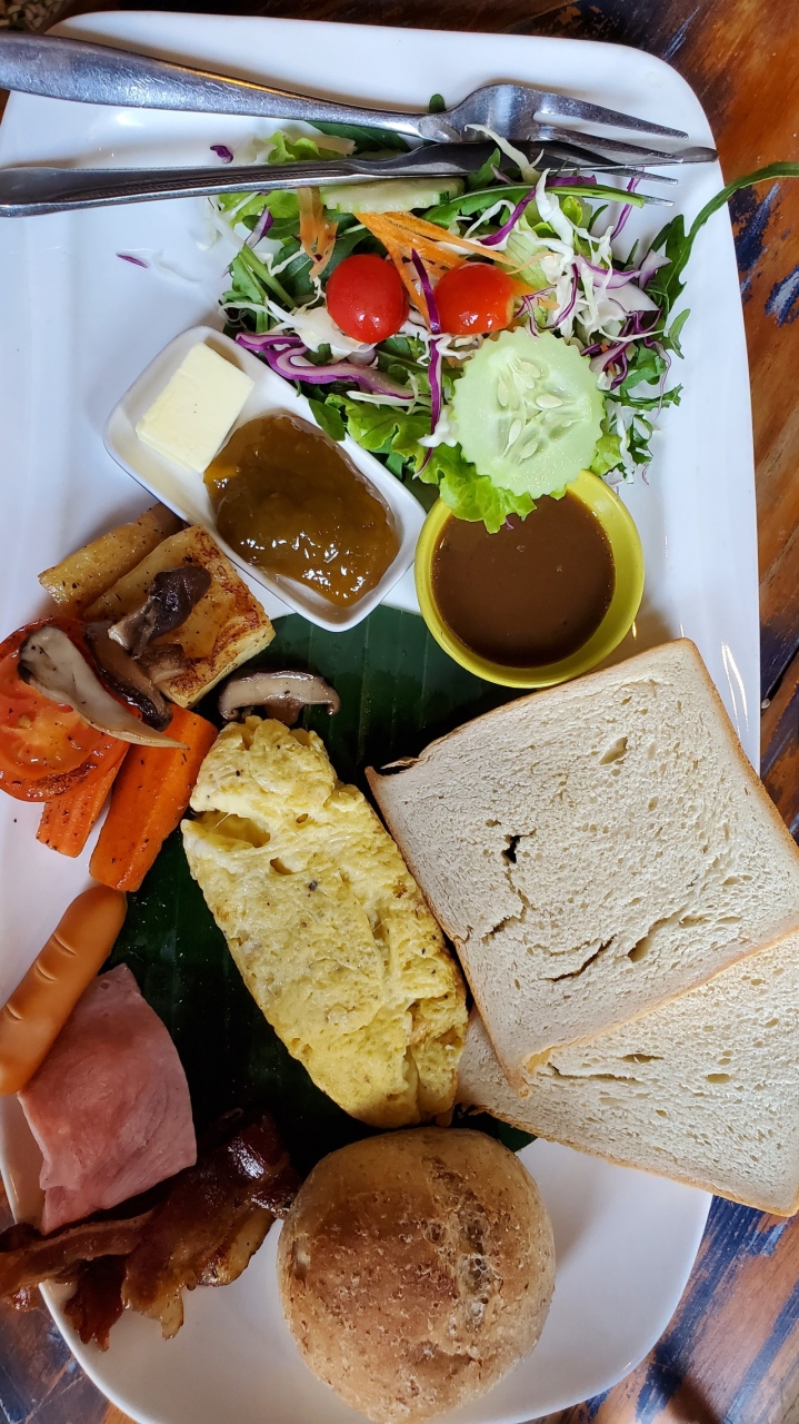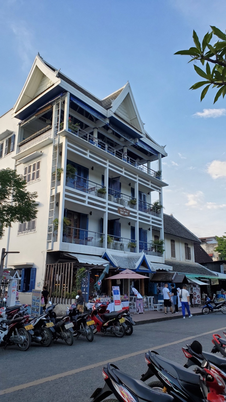 町の中心で、何をするにも便利です。また、このルアンパバーンの中で一番高い建物、だそうです。屋上にルーフトップレストランがあり、涼しくて居心地のいいレストランです。客室は、ホテルの名前の通り、「インディゴ」のインテリアで、かなり凝っています。スタッフの対応もよく、いいホテルでした。朝食はセットメニューで1Fのカフェで食べます。1Fの朝食も、ルーフトップレストランも、どちらもおいしかったです。