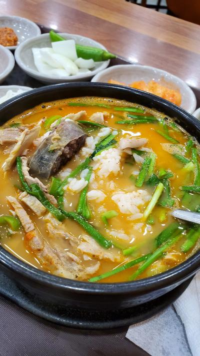 西面にはテジクッパの有名店がいくつもありますが、こちらも有名店の並びにあるので入ってみました。さっぱりした味でおいしかったです。好き嫌いがわかれるテジクッパですが、ここのは比較的食べやすい味と思います。24時間営業で使いやすいお店です。