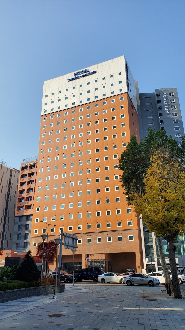 地下鉄駅からすぐで、すぐ隣にコンビニエンスストアがあり、とても便利です。が、ソウル市内ではないです。空港から車で移動すると近いですが、地下鉄で移動すると意外と時間がかかりました。客室内はいつもの東横インでとても快適です。最近の東横インは日本も含めて朝食に力を入れている感じで、こちらの朝食もおいしかったです。