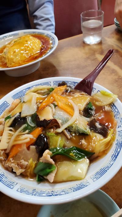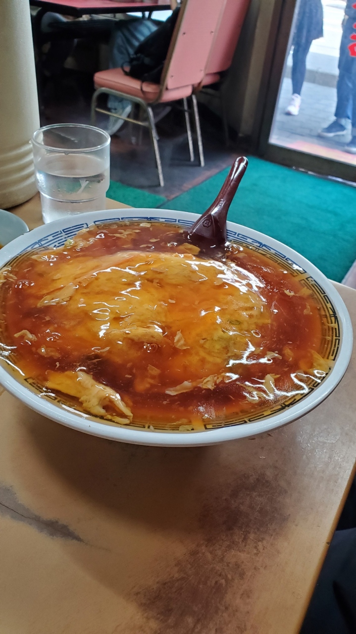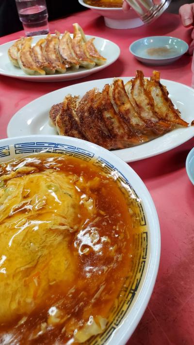 天津飯が有名なお店です。平日11時10分からに並んで、40分くらいでお店に入れました。天津飯以外にもいろいろなメニューがありました。餃子も有名なようで、普通の餃子と熟成の2種類があります。安くて量が多く、たまごふわふわでおいしくて、大満足でした。