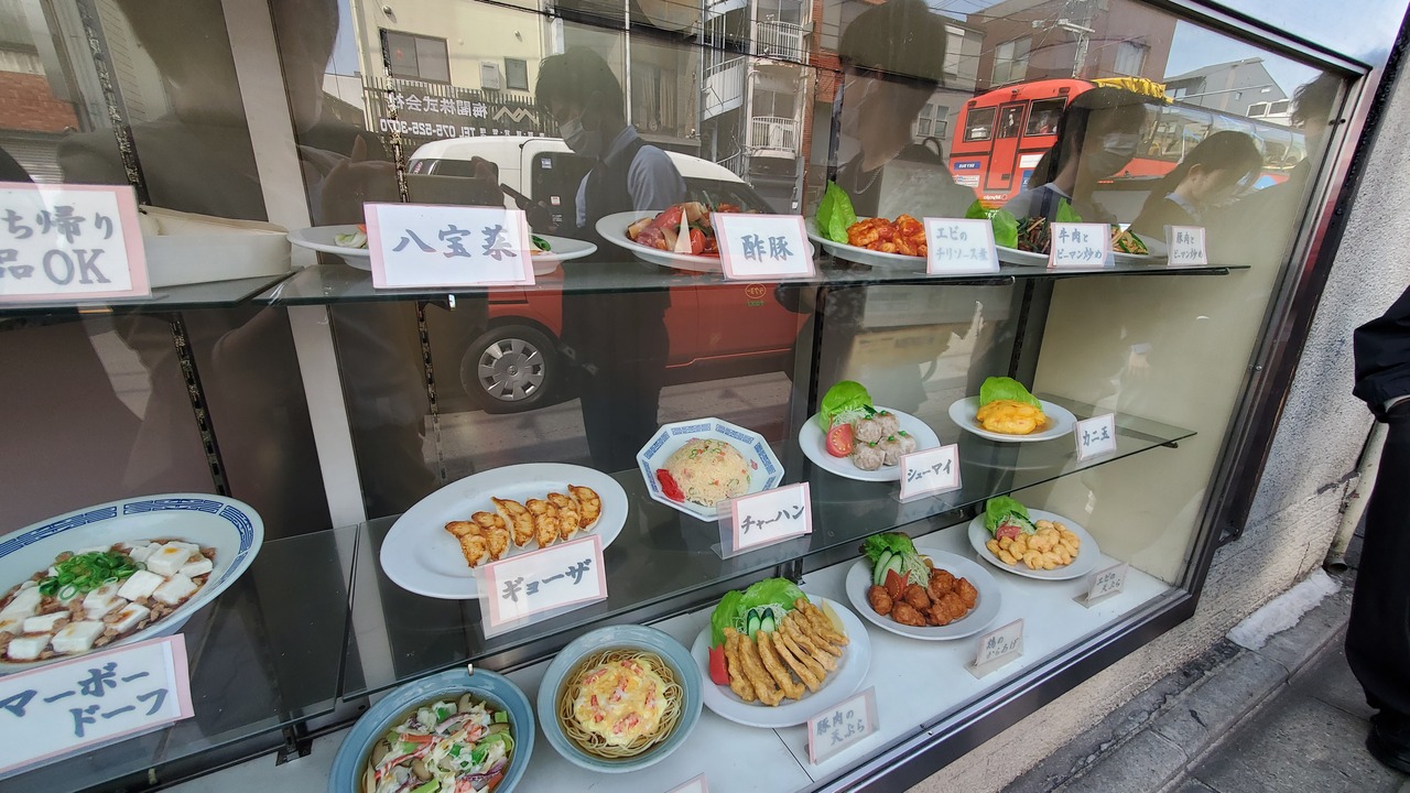 東山駅からすぐの中華料理店です。いつも行列しています。今回2回目の訪問。平日の12時20分から並んで店に入れたのが2時25分、桜観光のトップシーズンとはいえ平日のランチで2時間行列はなかなかのものと思います。天津飯と餃子が有名で、それ以外の口コミがあまり出てこないので、今回は天津飯、餃子2種、中華丼、四川ラーメンを3人でシェア。どれもおいしかったです。今回、「一番の人気メニューの天津飯の食品サンプルが店頭ディスプレイにない」ということに気がつきました。
