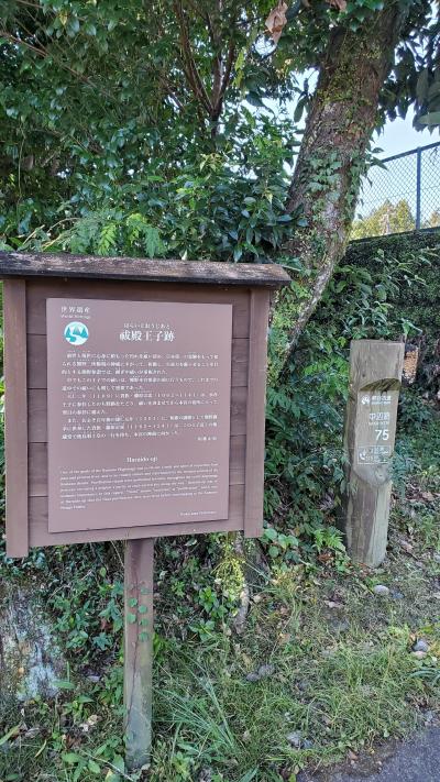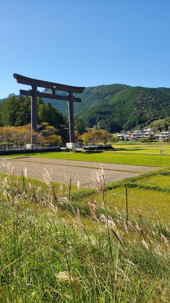 熊野本宮から歩いて5分の日本一の鳥居です。田んぼの真ん中にありました。看板によると、大鳥居が熊野古道のスタートの地であり、終着の地、であるそうです。かつてはこの地に社殿が大規模にあったそうで、いまはその名残(?)が残っています。