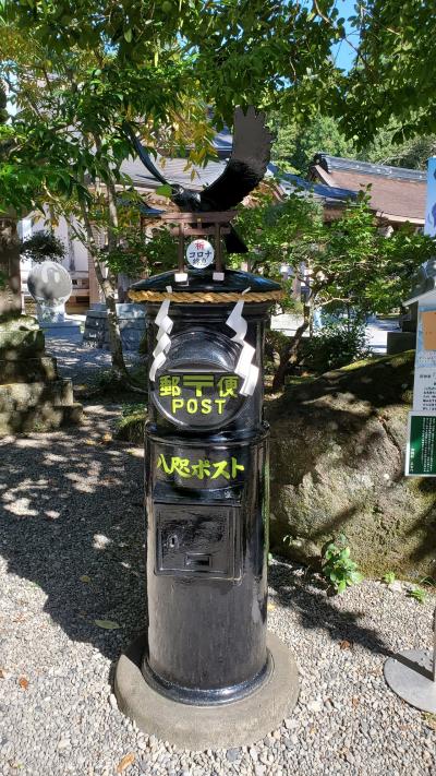 サッカー日本代表のシンボルの3本足カラスはここ熊野本宮のシンボルからきているとのことです。そもそも「鳥」「カラス」はあまりいいイメージがないそうですが、「鳥は行き先を知っている」とのことで、あがめるだけの価値がある存在とのこと。山の上にあるので会談を登っていく必要があります。社殿がいくつかあり、お参りする順序が入り口に書いてあるので、よく読んでからお参りするといいと思います。境内に「黒いポスト」があるので、ポスト好きの方は探すといいと思います。