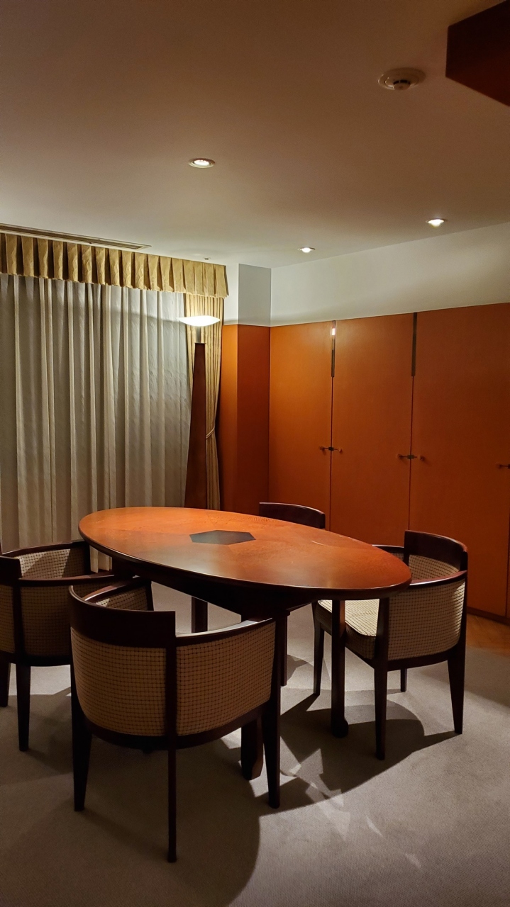 6階が特別室フロアのスイートルームに泊まれました。本当のスイートルームでした。ダイニング、キッチン、リビング、ベッドルーム、バルコニー。家具もみな重厚でとても快適に過ごせました。夕食もレストランでとりましたが、ジャパニーズフレンチのコースで大満足でした。ゴージャスな気分で満喫しました。