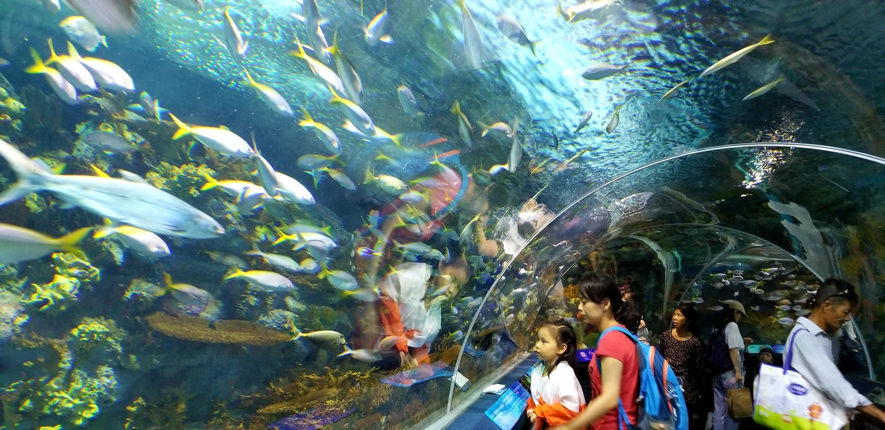 海雲台ビーチすぐの水族館です。表通りからは全景が良く見えないので規模が小さい水族館かと思っていましたが、それなりの規模です。イルカなどのショーはありません。サメの水槽でグラスボート、という企画があり、楽しく参加しました。説明が韓国語のみですが、珍しい体験でいいと思いました。