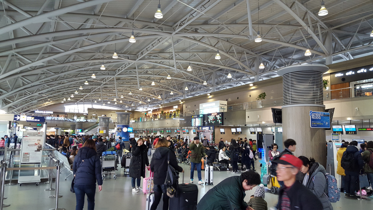 釜山市内までタクシーで移動しても対して高くありません。が、渋滞していると1時間くらいかかることもあります。国際線は搭乗口が8個しかないので、最近は飽和状態のように思います。出国したら、2階のラウンジの前のベンチが比較的空いていておすすめです。