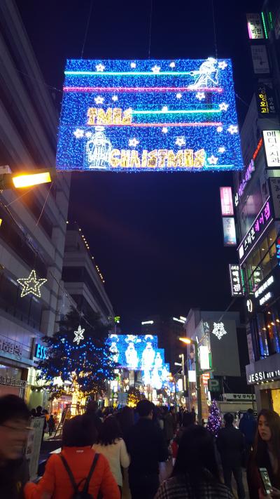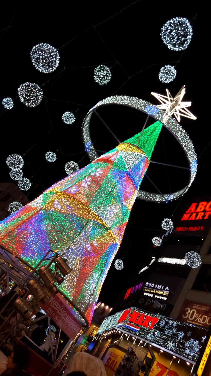 いまの時期、1/3までクリスマスイルミネーションをやっていて、とてもきれいです。イルミネーションは毎年少しずつ違います。繁華街なので、いつも人は多いですが、冬のイルミネーション期間は特に人が多いです。夜はにぎやかですが、朝早くから食事をするところはほとんどありません。