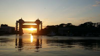 沼津港の水門です。中に入って見学もできますが、時間がなかったので外から夕焼けと一緒に見ました。夜になるとライトアップもされるそうです。これだけを見に行く、という施設ではありませんが、時間があったら行ってみるのもいいと思いました。入場料が必要です。