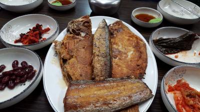 チャガルチというと刺身が有名ですが、焼き魚通りがあります。どの店もシステムは同じで、焼き魚の盛り合わせを注文するといろいろな魚を食べることができます。焼き魚だけならひとり10,000ウォン予算を見ればいいと思います。メウンタン(魚のチゲ)も食べられます。