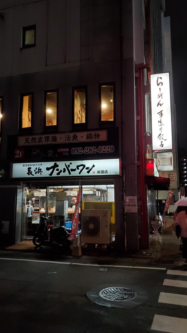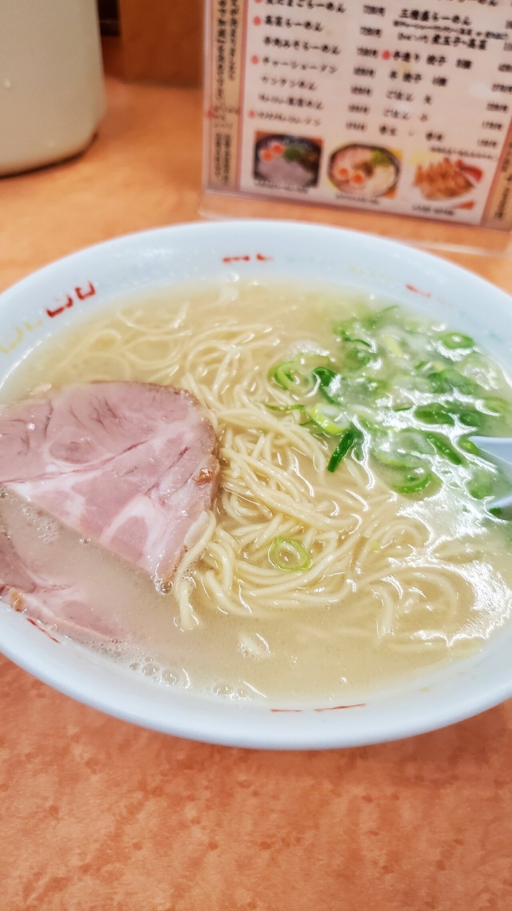 泊まっているホテルから歩いていける長浜ラーメン店を検索して一番最初に出てきたので行ってみました。壁いっぱいにサイン色紙がありました。普通のラーメンと半餃子食べました。量が多くなくて、なので、完食できました。濃厚でもしつこくなくて、とても美味しかったです。