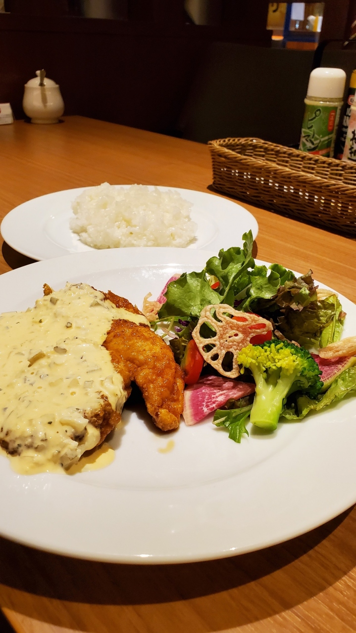 夕食に入りました。駅ビルのなかにある、大型の喫茶店ですが、食事も充実していました。コロナ禍の影響なのか、そこまで人は多くなかったです。宮崎名物のチキン南蛮と、最近、宮崎で熱いらしい餃子を注文。フツーにおいしかったです。コーヒーのいい香りがしました。