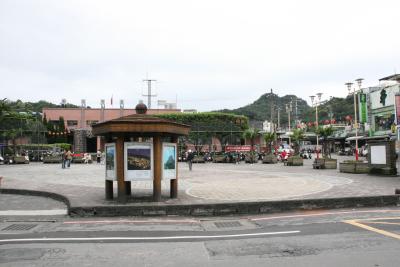 瑞芳駅前九分へは写真の様に駅に向かって右側に走るバスに乗る!