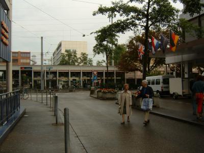 写真:中央・チューリヒ・オエリコン駅 右・スイソテル 左・ショッピングモール- 旅行時期