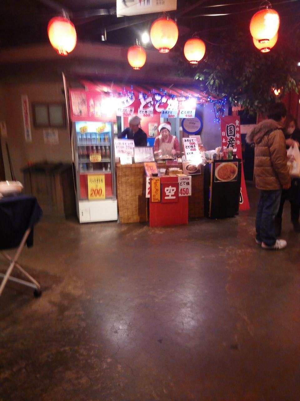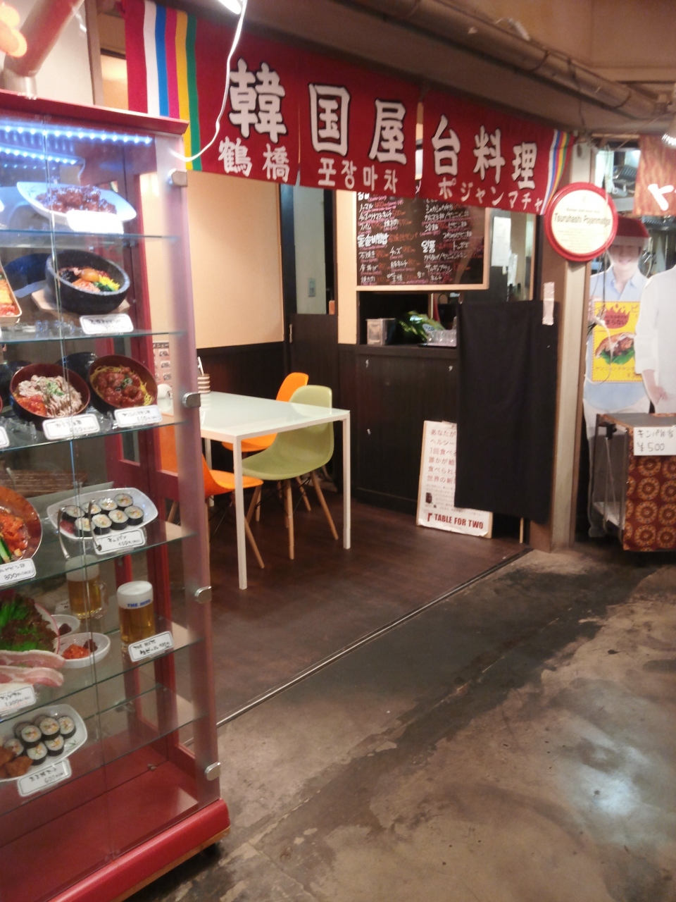 大阪南港に有る、天保山マーケットプレースの中にあるなにわ食いしんぼ横丁の中にある鶴橋ポジャンマチャ です。こおでは、韓国料理が食べれます。韓国屋台料理が中心で、韓国海苔巻、トッポギ、ビビン麺、キンパ(韓国のり巻き)、チゲ鍋定食が食べれます。