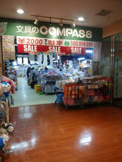 文具のコンパス は、天保山マーケットプレース2階のフードコーナの奥の不思議な空間に有ります。大々的に2000円購入で1時間ぶんの駐車券が貰える宣伝がしてます。割引券くれるのここだけしか有りませんので、必要なからはどうぞって感じです。