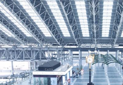 時空の広場は、開放感の中で時を感じる。行き交う列車とドームを 見渡す大パノラマ空間です。イベント会場にも成っています。大空のような巨大ドーム屋根が素晴らしいです。 見上げると、天空にそびえ立つような優雅な感じが見られます