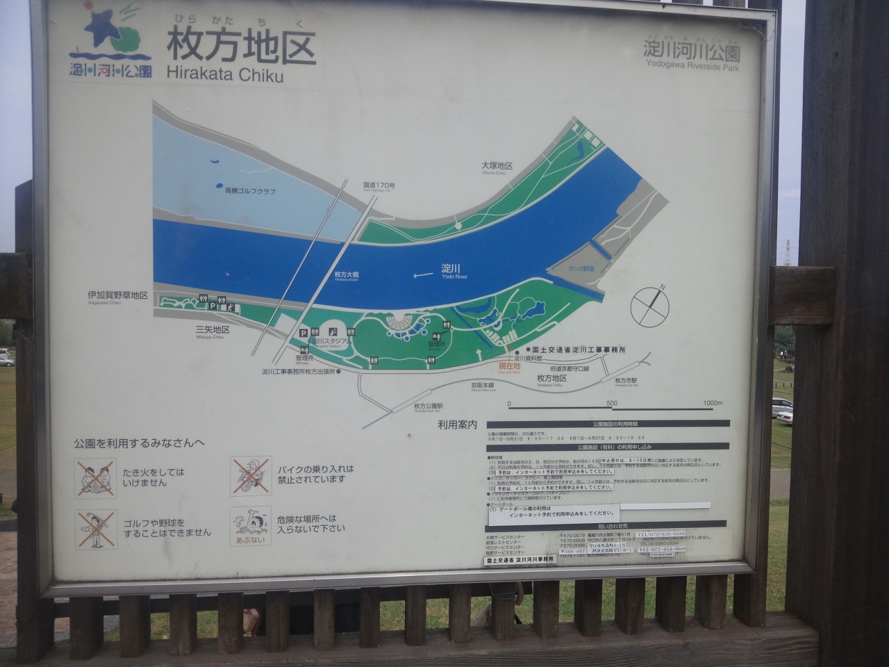 この公園では、枚方大橋の下がバーベーキューのエリアに指定されています。特に土日は大変な人気で朝の早くから場所取り合戦が起こります。近くに大型のスーパーもあり買いだしにも大変便利です。徒歩では、枚方公園から15分程度です。ゴミは持ち帰りが必要です。