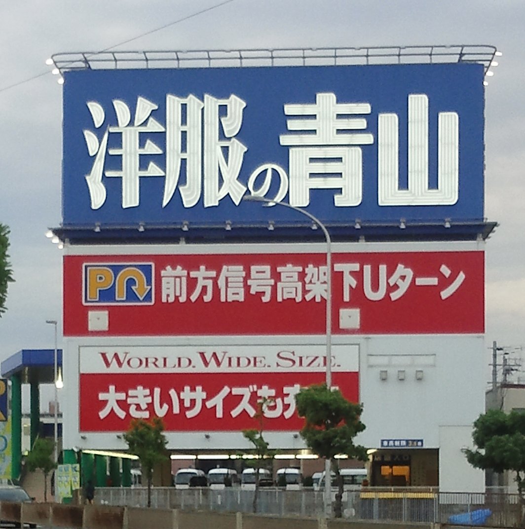 国道170号線によく目立つ大きな洋服の青山の看板があります。一階は駐車場に成っていて上の買いがショップです。店内には、メンズ物がスーツがずら~りと並んでいます。ズボン、ワイシャツ、ネクタイ、靴下なども沢山あります。女性向けのスーツもゴマンと・・・サラリーマンの必需品が揃う店屋です。