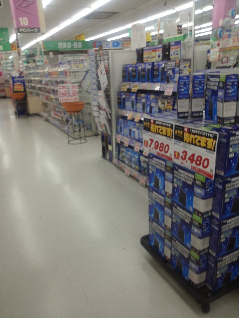駐車場は、他の店舗と共用です。特に管理されてなく、何も買わなくても駐車場は無料で使える。店舗には、家電製品を始め映像・音響機器、情報通信機器が沢山展示してあります。その他には玩具、模型等の ホビー商品も多彩に取り扱ってました。