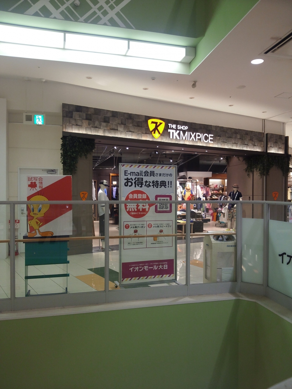 ジーニングカジュアルブランドを展開するザ ショップ TKミクスパイスです。店内には、普段着できられるジーズにある物が数多く置いてあります。メンズ、レディス、キッズまで展開してあります。こじゃれた雑貨まで沢山置いてあります。