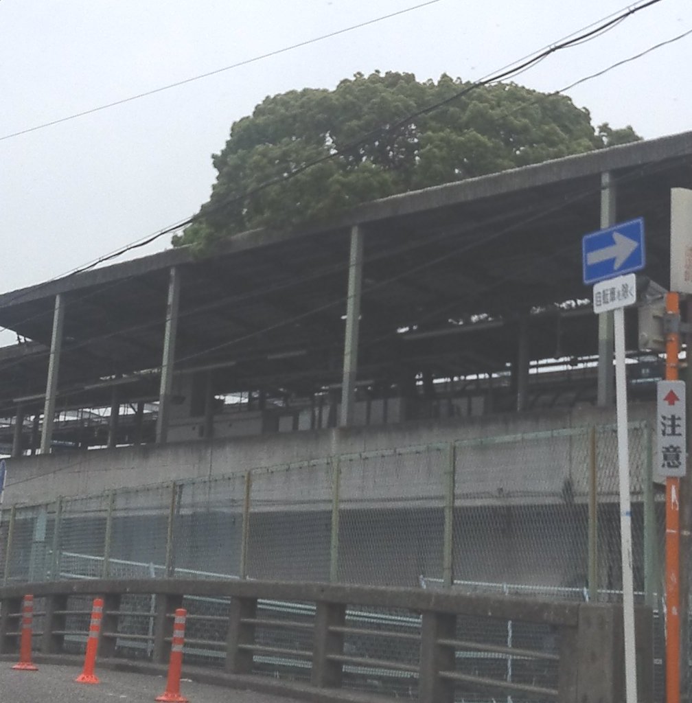 元々萱島駅のホームのすぐ隣にあったが、駅が高架複々線になる際にどうしてもこの木が邪魔になってしまい伐採が検討されが、地元の人々のクスノキ保存の声に応えて後世に残るよう駅と木が共存することになり、木がホームと屋根を突き抜けるという形になりました。