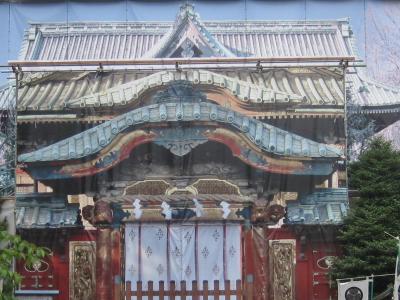 残念ながら社殿へ改修工事中なので立ち入り禁止となっておりました。布にプリントされている状態です。