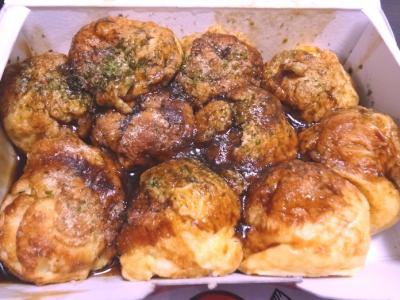 この店屋は他とは違いたこ焼きの種類が多いのが特徴です。普通の大玉たこやきからネギ、出汁、キムチ、イタリン、おろしポン酢とあります。味は大阪の標準と言った感じです。他にはお好み焼き、やきぞば、たこせん、いかせんて初めて聞きました。たこせんは良くあるけどいかせんって今度食べてみよう