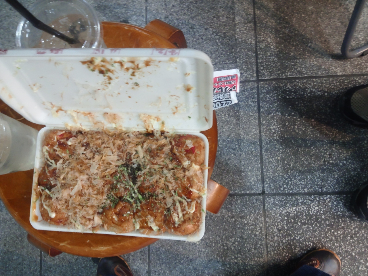 たこ焼でお酒飲んでる人が
