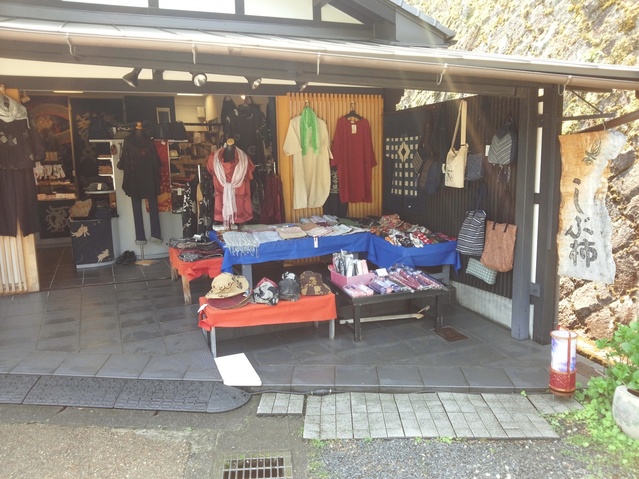 しぶ柿では、本格藍染めの生地を使い、縫製された洋服やは、京都産のものにこだわり、西陣織のネクタイ、漆を使った洋服、バッグ、帆布製のものなどが置いてあります。値段は、それなりにしますがいいものが置いてあります。