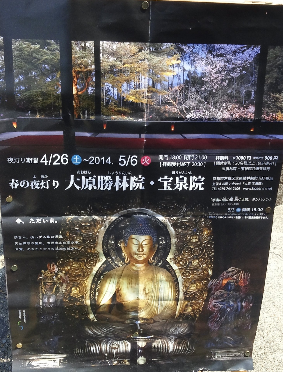 大原にある宝泉院では、春の夜灯りが実施中でした。期間は4月26日から5月6日までの限定期間です。18時から21時までの限定時間。お値段がなんと1000円と以外に高めのお値段です。夜は、大変幻想的な様相になるので行く価値はあります。