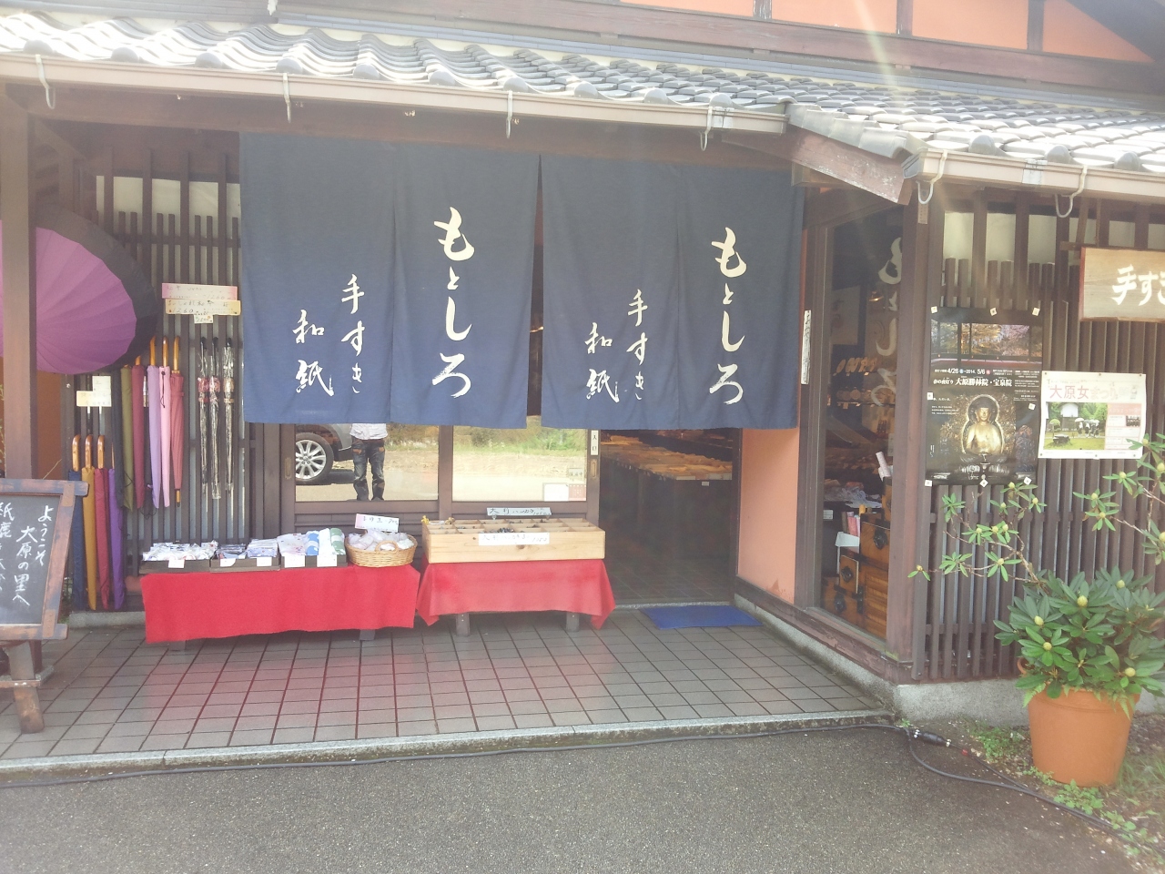 大原にある和紙製品や小物の店屋のもとしろです。店内では、和紙にこだわりる商品、バリエーションとてもと豊富に置いてあります。和紙製の食器や花器など他ではお目にかかれないものが置いてあります。手漉き和紙の体験コーナーも有ります。