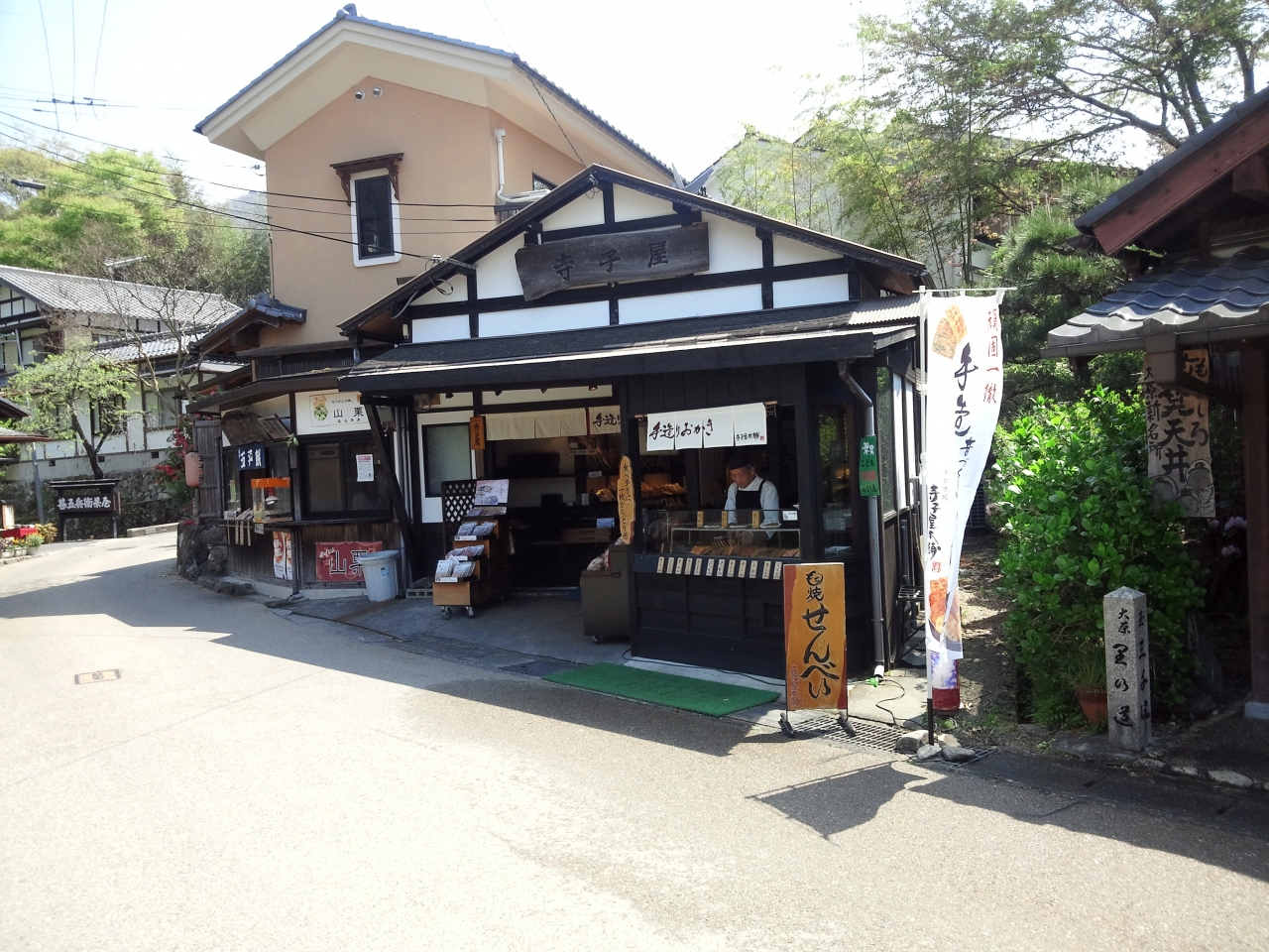 煎餅・おかき・ぬれおかきの専門店の寺子屋本舗です。店頭で手焼きもされていて焼きたてのおせんべいが食べれます。寺子屋本舗のおせんべいは100%国産の良質の餅米なのでとても美味しいおせんべいです。値段はちょっとその分高いですけどね