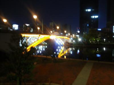 中之島を挟んだ反対側の堂島川では、うなぎを釣る人を見たが、土佐堀川では何故か見かけなかった。何故なのでしょうか?少し疑問が人が少ないほうが競争率が低いように思えるですが。夜は川に掛かる橋がライトアップされて綺麗でした。